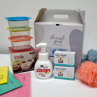 선물세트 9종-핸드워시 비누 집밥용기 독일행주 샤워볼