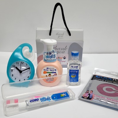 선물세트 8종-핸드워시 가그린 치약 칫솔 흡착시계 쿨타올