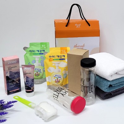 선물세트6종 아이깨끗해 핑크소금 치약 마이보틀 타올 타월