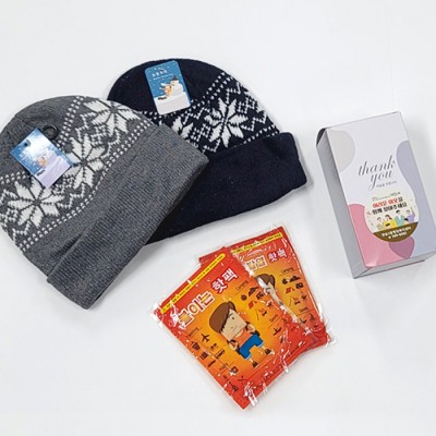 선물세트3종 방한모자 모자 털모자 비니 핫팩 손난로