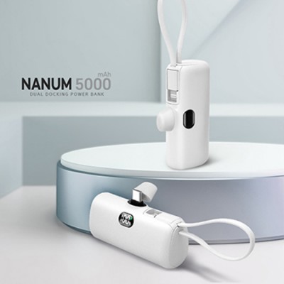 바른생활 나눔5000 듀얼 일체형 도킹 보조배터리 5,000mAh C타입/8핀 화이트