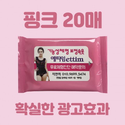 [빅사이즈라벨] 사이즈가 큰라벨 전도용 교회용 행사용 홍보용 물티슈 20매(핑크, 고급스런 분홍물티슈)